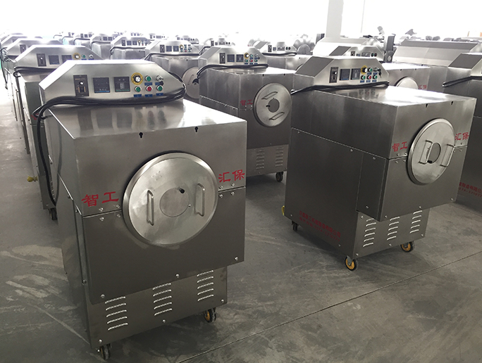 该机型使用三相电压 一锅炒板栗30斤左右 机器只需设定好温度和档位无需人工干预 自动炒制 炒熟自动警报 只需人工一键出锅 方便快捷 炒出板栗色泽油亮卖相好 适合店面商超等使用