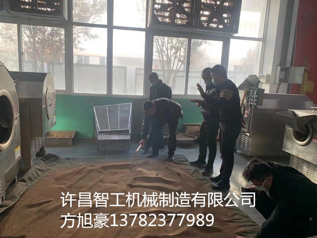 12月12日,河南客户一行二人带200斤芝麻来到许昌智工机械制造有限公司考察7-15型电磁炒货机。